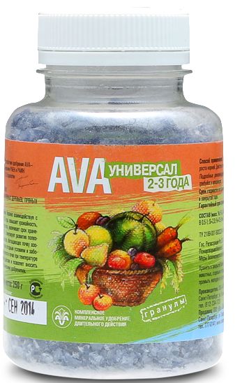 Вносится под землянику, малину, ягодные кусты (смородину, крыжовник, жимолость и т.д.), под плодовые и косточковые культуры (яблоню, абрикос, вишню, сливу, облепиху, рябину), под все многолетние цветы и декоративные кустарники, хвойники, при посадке чеснока и луковичных цветов. Для косточковых и южных растений (виноград, самшит), привыкших к бедным азотом почвам, AVA особенно эффективно.