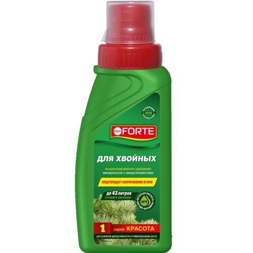 → Рекомендация Bona Forte: лучший результат дает совместное использование корневых (полив) и внекорневых подкормок (опрыскивание хвои раствором удобрения).