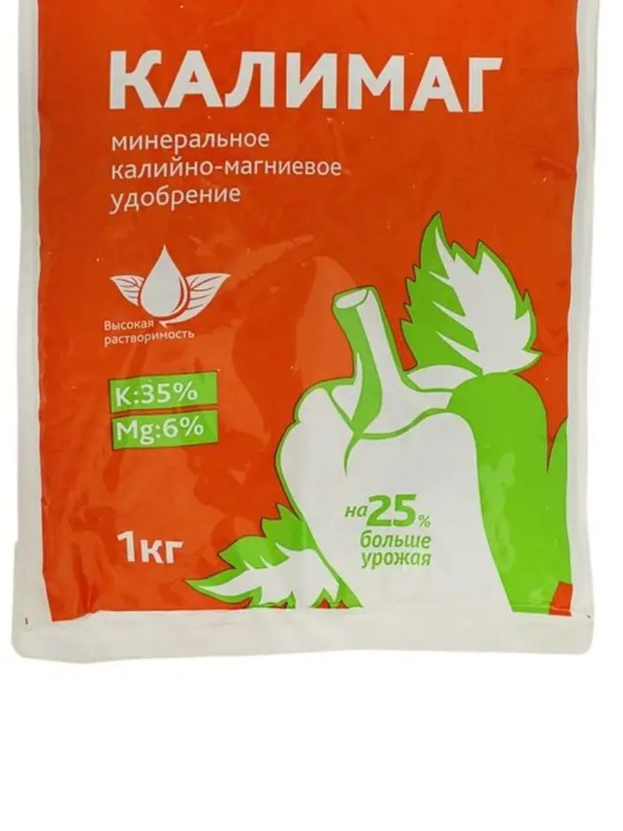 Удобрение Калимаг - это концентрированное минеральное калийно-магниевое удобрение, по химическому составу представляет собой смесь хлоридов калия, магния, кальция и натрия.Калимаг рекомендован для использования под все выращиваемые культуры, деревья, ягодные и декоративные кустарники, а так же для их корневой подкормки.Преимущество использования Калимага заключается в комплексном и одновременном внесении одних из самых необходимых для развития растений микроэлементов.При удобрении почвы калием, магнием и серой по отдельности наблюдается их неравномерное распределение в грунте.В результате подкормки препаратом культурных растений: повышается устойчивость перед заболеваниями;увеличивается урожайность; улучшаются вкусовые качества готовой продукции; продлевается период плодоношения. При почвенном дефиците калия огородные культуры легче поражаются болезнетворными грибками, плохо переносят перепад температур.