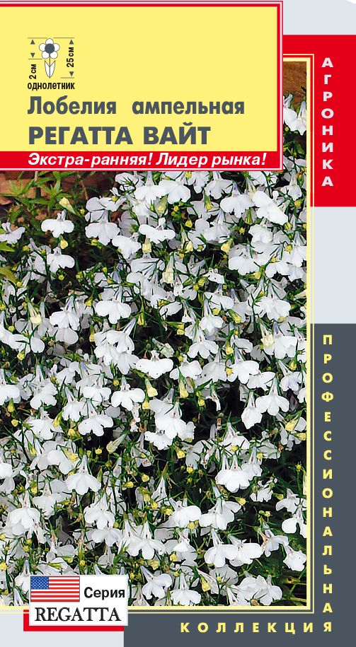 Лобелии серии Regatta уже много лет являются эталоном среди ампельных лобелий, ведь они сочетают в себе экстра-раннее начало цветения (до 4 недель раньше других ампельных лобелий), широкий выбор расцветок (в том числе уникальных), продолжительное и обильное цветение. Все это, вместе с неприхотливостью в выращивании, дает им право называться лидерами рынка! По мере роста растение сначала формирует сильно-ветвистый кустик высотой 15-20см, а затем продолжающие свой рост побеги начинают ниспадать каскадами ярких цветов, достигая длины до 35см. В период цветения все растение покрыто одиночными, до 2см в диаметре, белыми цветками. Данная лобелия отлично подойдет для выращивания в подвесных кашпо и балконных ящиках, вазонах и больших контейнерах, по периметру приподнятых клумб. За счет раннего цветения, растения могут реализовываться в технологических кассетах уже в цветущем виде, для дальнейшей высадки на постоянное место.