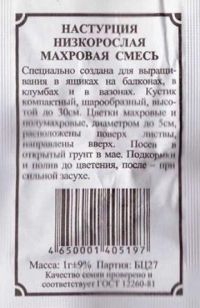Настурция низкорослая махровая смесь б/п 1г Агроника