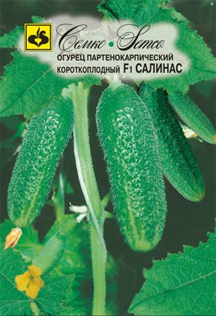 Огурец Салинас F1 - ранний партенокарпический гибрид для пленочных теплиц и открытого грунта, аналогичный пчелоопыляемому гибриду Отелло F1, корнишонного типа, с пучковым плодоношением. От всходов до начала плодоношения 41–45 дней. В одном узле формируется 3–5 плодов. Отличается дружной отдачей раннего урожая. Плоды цилиндрические, мелкобугорчатые, зеленые, без горечи, длиной 8–10 см, массой 70–80 г. Вкусовые качества, товарность и транспортабельность высокая. Огурец Салинас F1 устойчив к мучнистой (Px) и ложной мучнистой росе (Pcu), кладоспориозу (Ccu), вирусу огуречной мозаики (CMV-1). Рекомендуется для выращивания в открытом грунте, пленочных теплицах. Для свежего потребления, консервирования и засола. Схема посева 70х30 см. Урожайность в открытом грунте свыше 8 кг/м2, в теплицах свыше 14 кг/м2.