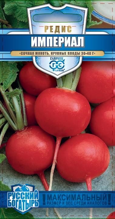 Редис — один из первых весенних плодов, которые появляются в нашем меню после долгой зимы. Это сочный, приятный на вид плод со сладковатой остротой, богат клетчаткой и витаминами. Сорт среднеспелый, через 25-30 дней можно собирать первый урожай очень крупных корнеплодов. Красные плоды имеют округлую форму диаметром 8-10 см и массой 30-40 г, с белой, хрустящей мякотью. Вкусовые качества отменные. Используют в свежем виде: нарезке, салатах, окрошке. Из редиски готовят закуски, бутерброды. Сорт относительно устойчив к болезням. Посев в грунт проводится в конце апреля-начале мая, июле на глубину 1 см по схеме 5-7x15 см. Урожайность 3,2-3,4 кг/м2.