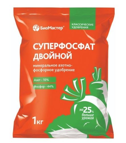 Читать все статьиСуперфосфат двойной 1кг Азот-10%,Фосфор-44% БиоМастер