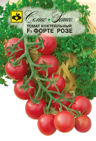 Томат Форте Розе F1 - ранний гибрид томата для выращивания в теплицах или в открытом гранте с подвязкой к опоре. Растение средневетвистое, формируют в один или два стебля. От всходов до созревания плодов 95–100 дней. Первое соцветие формируется над 9–11 листом, последующие через 3 листа. В кисти созревает в среднем 10–12 плодов. Помидоры округлой формы, интенсивной розовой окраски, двухкамерные, массой 50–60 граммов, плотные, гладкие, устойчивые к растрескиванию. Гибрид отличается одновременным созреванием плодов в кисти. Вкусовые и товарные качества отличные, транспортабельность и лежкость хорошие. Томат Форте Розе F1 устойчив к вирусу томатной мозаики (ToMV). Рекомендуется для потребления в свежем виде и цельноплодного консервирования. Схема посадки 70х40 см. Урожайность свыше 15 кг/м2.