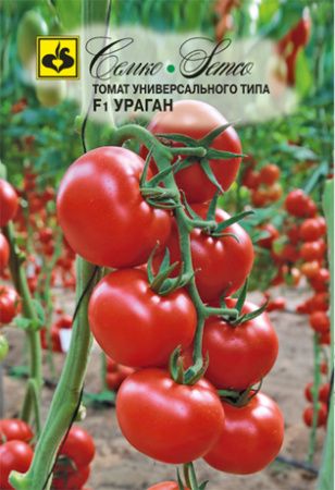 Томат Ураган F1 - ранний, индетерминантный гибрид томата для теплиц и открытого грунта. От всходов до созревания плодов 85–90 дней. Растение среднерослое, среднеоблиственное. Первая кисть закладывается над 9 листом, последующие через 3 листа. В ;кисти формируется 6–8 плодов. Помидоры округлой формы, гладкие или слегка ребристые, равномерной ярко-красной окраски, массой 90–110 г, не растрескиваются. Вкусовые и товарные качества помидоров отличные. Гибрид Ураган F1 отличается высокой дружностью отдачи раннего урожая. Устойчив к вертициллезному увяданию (Vd). Используют для выращивания в теплицах, пленочных тоннелях и в открытом грунте с подвязкой к опоре. Схема посадки 70х40 см. Урожайность в открытом грунте до 8–10 кг/м2, в пленочных теплицах 12–14 кг/м2.