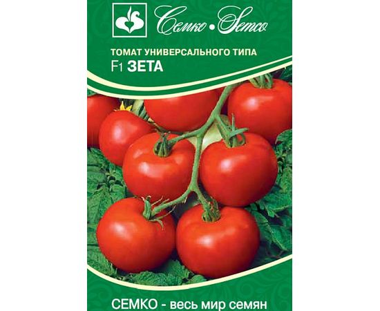 Томат Зета F1 - ранний гибрид для открытого грунта и пленочных теплиц. От всходов до начала созревания 90–95 дней. Растение высотой 60-70 см, среднеоблиственное. Первая кисть закладывается над 5-6 листом, последующие через 1-2 листа. Кисть простая с 5–6 плодами. Плод округлый, гладкий, плотный, массой 130-150 г, в технической фазе спелости зеленовато-белёсый, в биологической красный, без зелёного пятна у плодоножки. Отличается высокой дружностью плодоношения, в первые две недели созревают более 40% плодов. Вкусовые качества высокие. Товарность и транспортабельность хорошая. Томат Зета F1 устойчив к вирусу томатной мозаики (ToMV), вынослив к альтернариозу (Acs), фузариозу (Fol 1-2) и фитофторозу (Pi). Отличается устойчивостью к повышенному засолению почвы. Используется для свежего потребления, консервирования и засолки. Рекомендуется для выращивания в открытом грунте и плёночных необогреваемых теплицах. Схема посадки 70х30 см. Урожайность в открытом грунте свыше 10 кг/м2, в плёночной теплице 17–20 кг/м2.